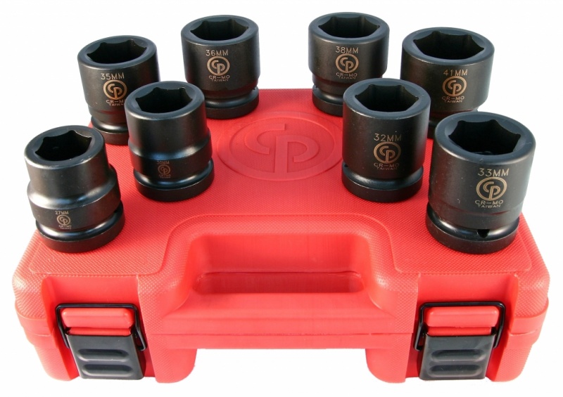 Посадочный квадрат хвостовика (в дюймах) - 1". Количество головок в наборе - 8 шт. Размеры головок в мм: 27, 30, 32, 33, 35, 36, 38, 41.