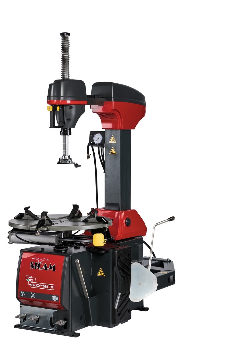 Автоматический шиномонтажный станок. Усиленная жёсткость конструкции (G-образная рама). Традиционный монтажный стол. Две скорости. Диапазон захвата дисков от 10" до 28", Максимальная ширина шины 12,5". Напряжение питания 380 В. Цвет красный (RAL 3000).
