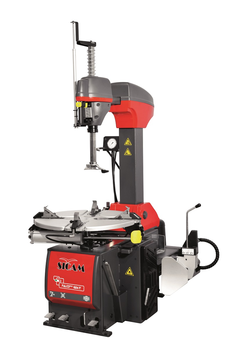 Автоматический шиномонтажный станок. Усиленная жёсткость конструкции (G-образная рама). Пневматическое позиционирование монтажной головки. Боковой отжим борта шины с плавной регулировкой усилия при помощи рукоятки Ergo Control. Традиционный монтажный стол. Две скорости. Диапазон захвата дисков от 10" до 28", Максимальная ширина шины 12,5". Напряжение питания 380 В. Цвет красный (RAL 3000).